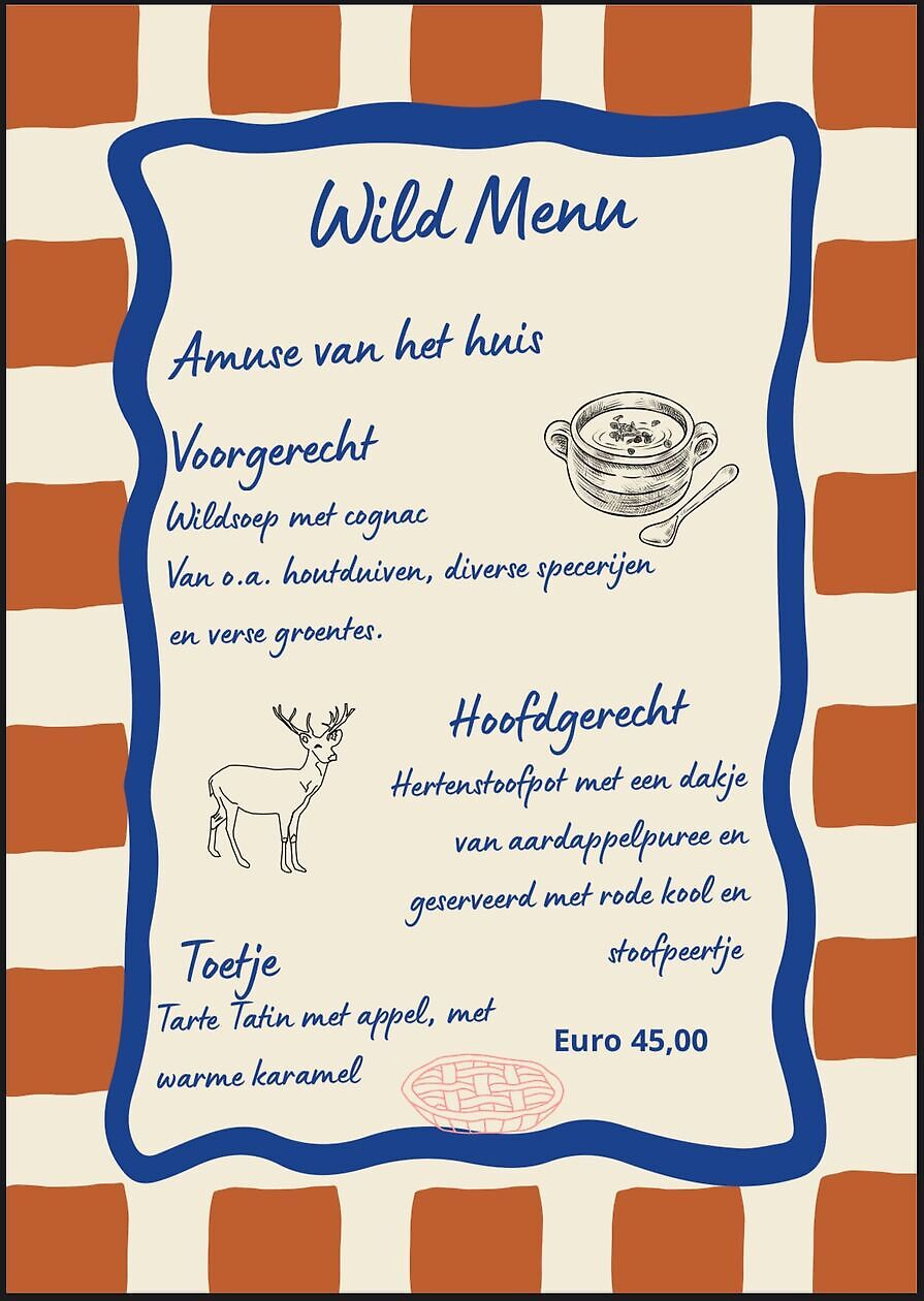 Wij hebben dit jaar een fantastisch klassiek 3-gangen wildmenu met amuse van het huis!